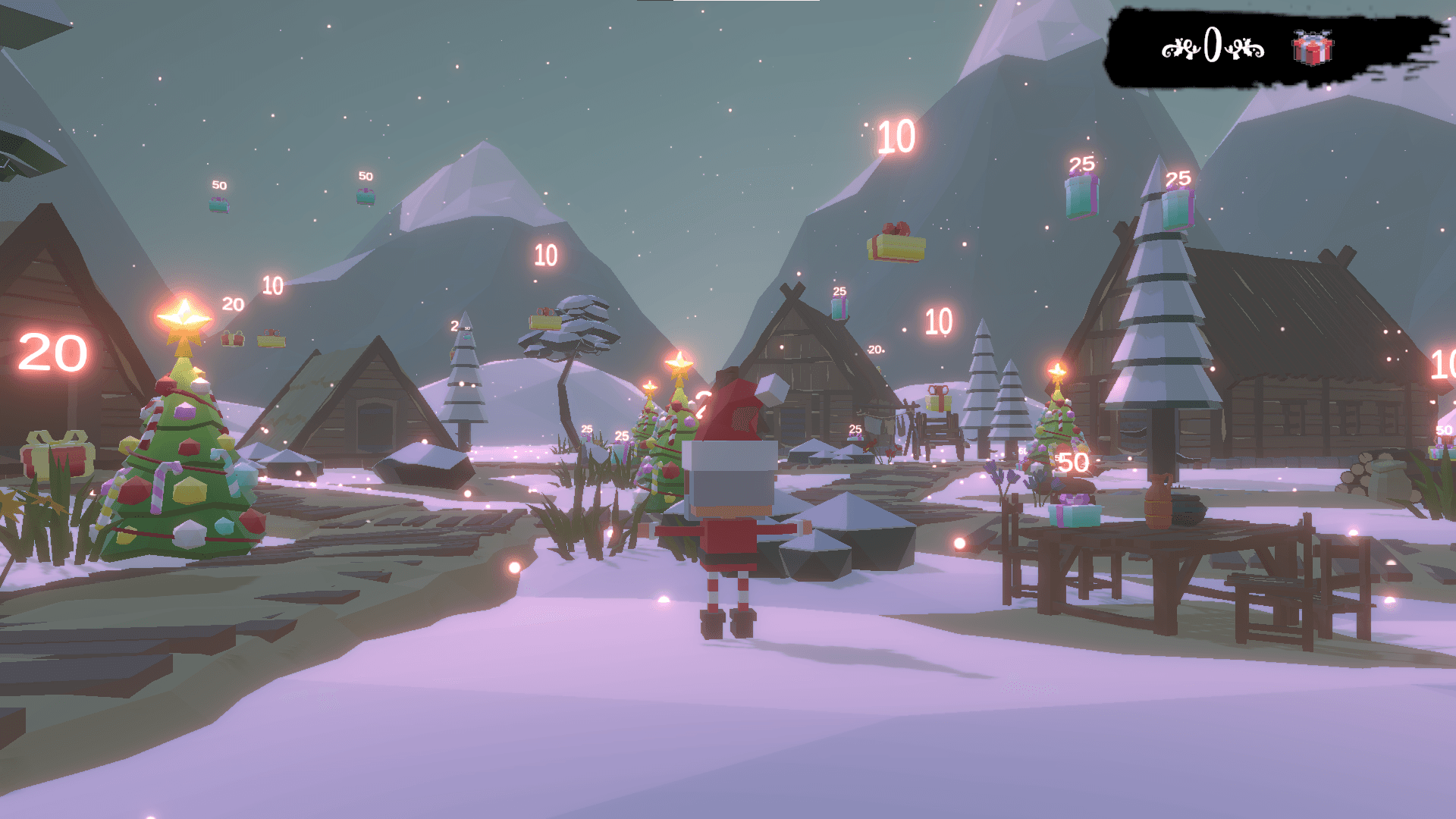 Compete with your friend online to be the one to collect the most gift dispersed all across the Elf village
